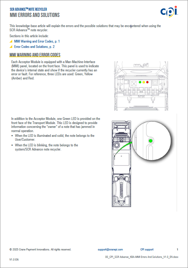 Home > Note products > Note recyclers > SCR Advance™ note recycler > SCR Advance | Article, MMI Errors And Solutions | English