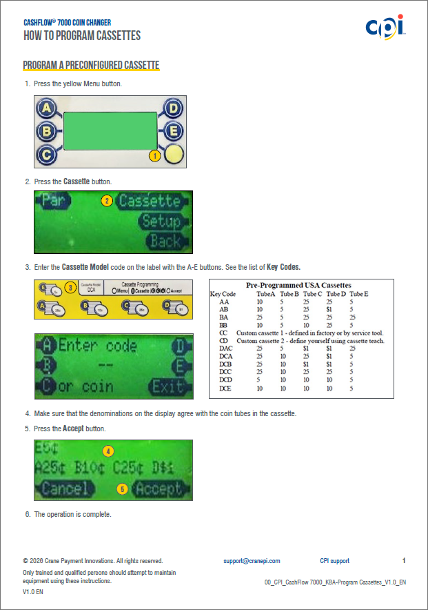 Home > More products > Legacy products > CashFlow® 7000 coin changer > CashFlow 7000 | Article, Programming Cassettes | English