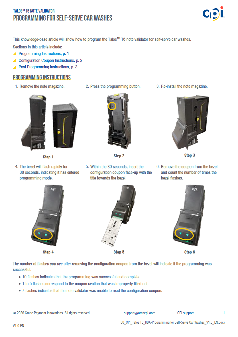 Home > Note products > Note validators > Talos™ note validators and note recycler > Talos T6 | Article, Programming For Self-Serve Car Washes | English