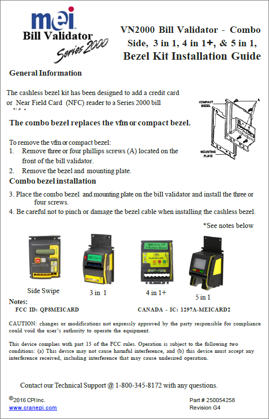 Home > More products > Legacy products > Series 2000™ note validator and note recycler > Series 2000 VN2000 | Technician Guide, Bezel Kit Installation | English