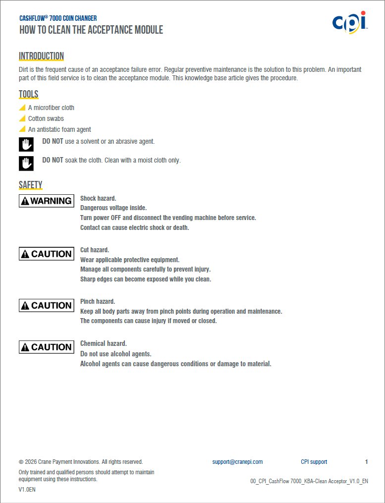 CashFlow 7000 | Article, Cleaning Acceptance Module | English