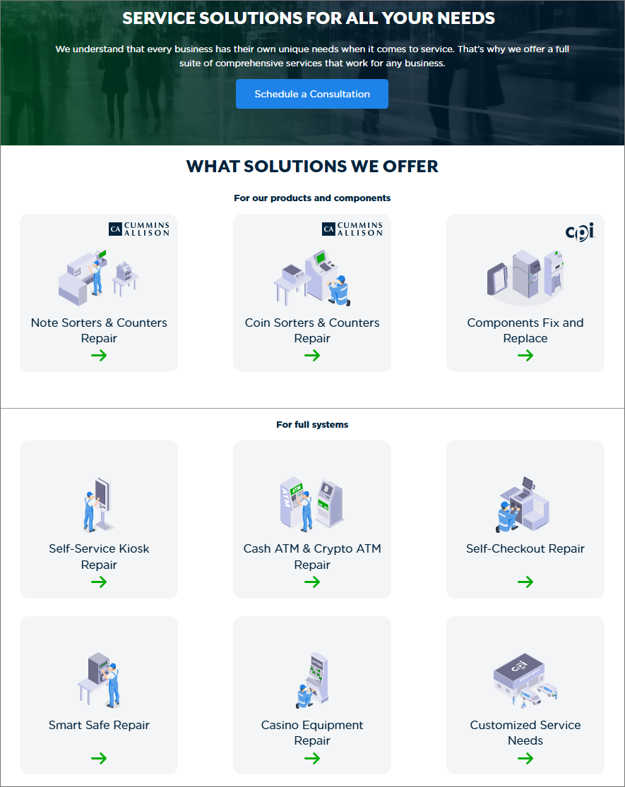 CPI and Cummins Allison: Repair and Maintenance Service Solutions Click here or on the picture below to learn more about our Repair and Maintenance Service Solutions.