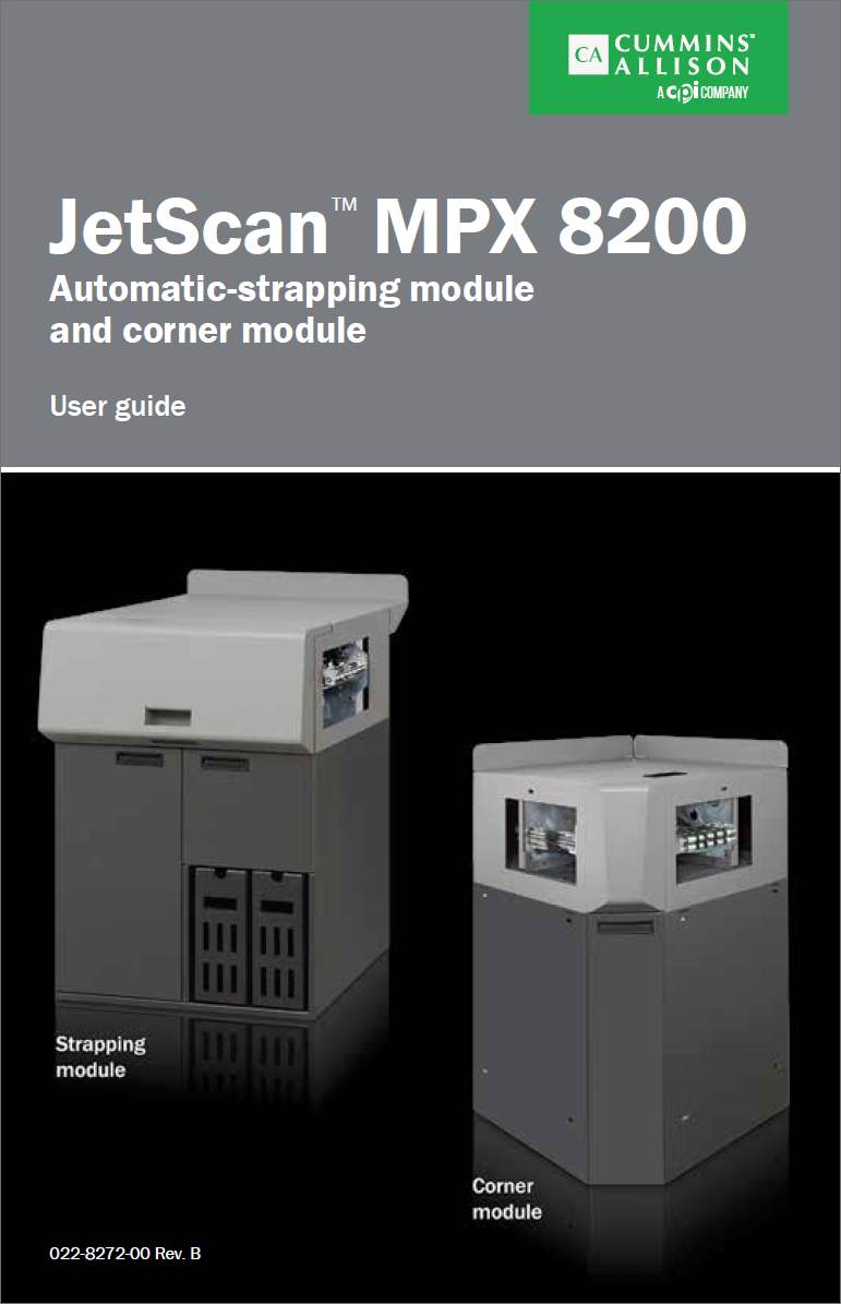 Home > Note products > Multi-pocket note sorters > JetScan™ MPX 8200 multi-pocket sorter > JetScan MPX 8200 | User Guide, Strapping Module, Corner Module | English