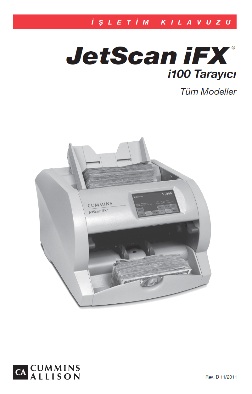 Home > Note products > Note scanners > JetScan iFX™ i100 scanner > JetScan iFX i100 | User Guide | Turkish